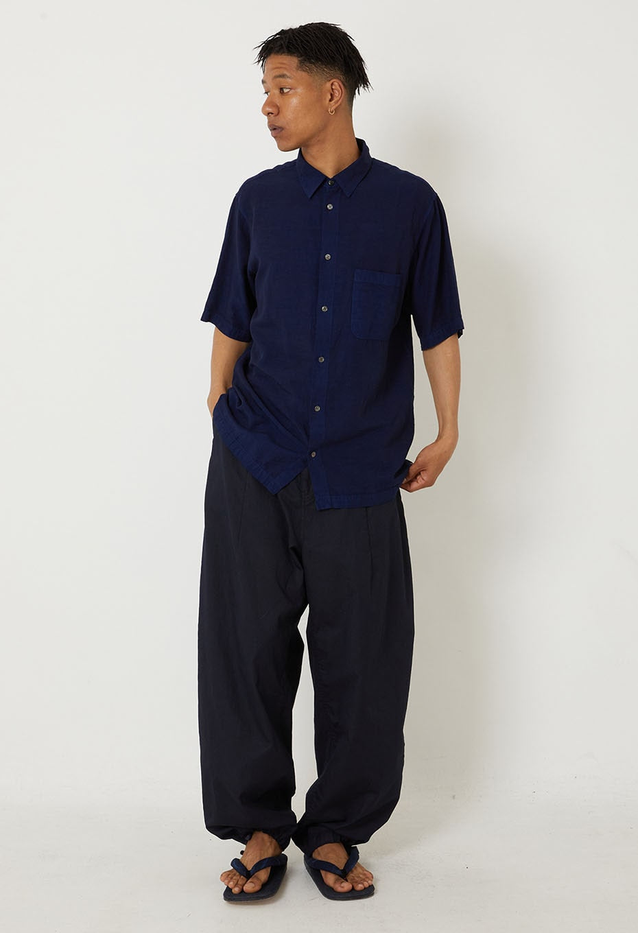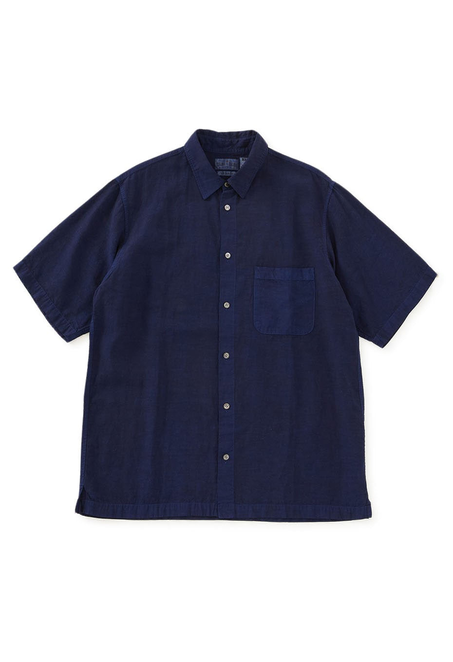 Cette chemise à manches courtes au design épuré met en valeur la teinture honnai indigo, offrant une allure décontractée et naturelle. Sa coupe ample et relax permet de profiter pleinement de la fluidité du tissu et apporte un confort idéal pour un port quotidien.