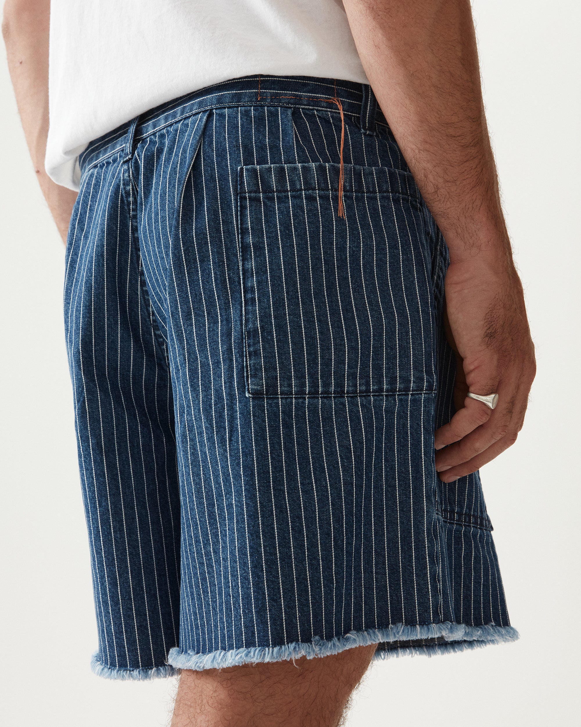 PINSTRIPE DENIM SHORTS