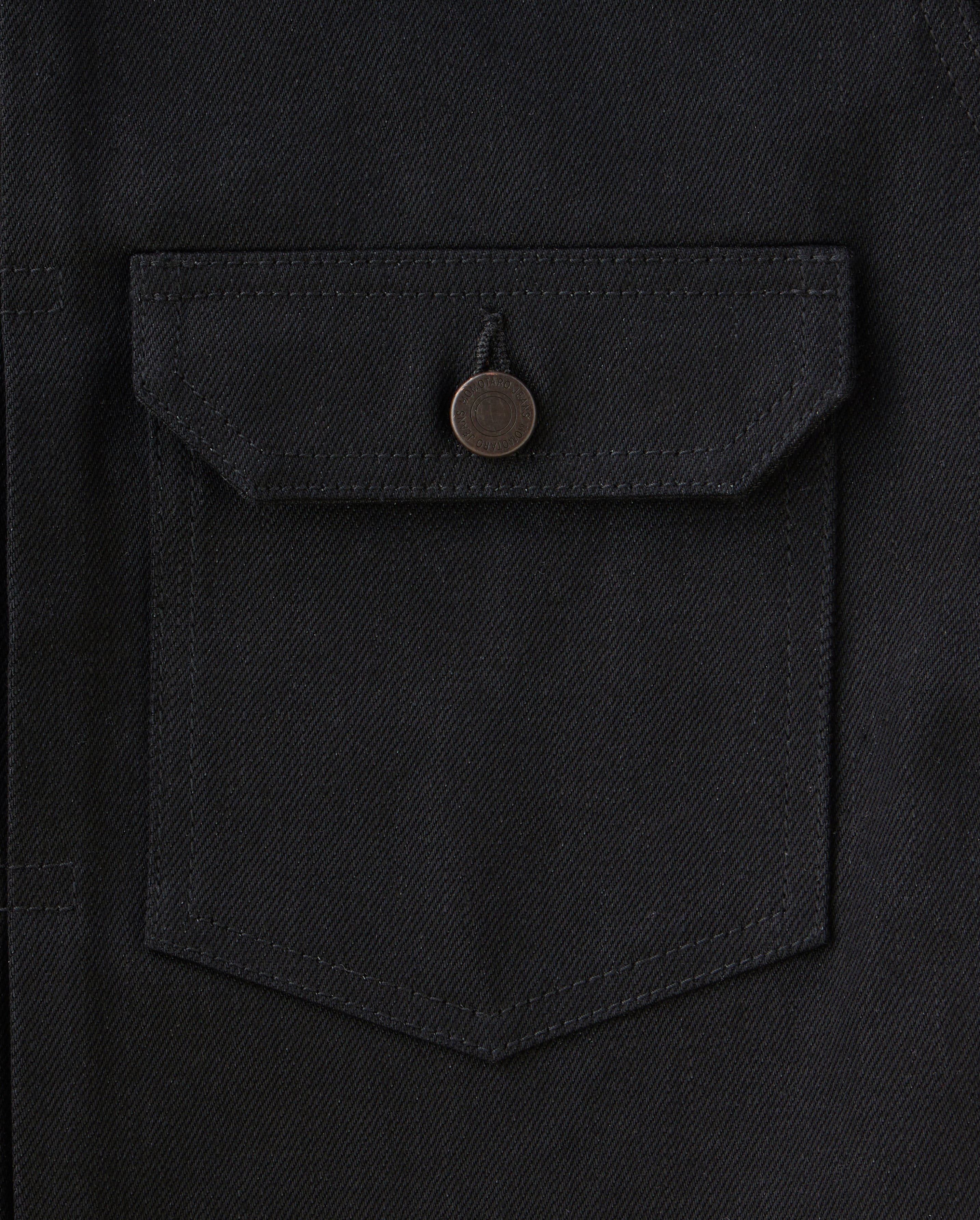 La coupe est classique, offrant une largeur de buste ample et une longueur modérée pour un porté agréable. Le col reprend le style chemise traditionnel. La fermeture centrale se fait par des boutons métalliques. Deux poches poitrine à rabat s’accompagnent de poches latérales discrètes et pratiques. Confectionnée en denim TOKUNO BLUE rigide, non lavé, avec une teinte indigo intense et une texture distinctive. Les fils de trame affinés renforcent la profondeur de la couleur. Un traitement anti-rétrécissement assure une tenue dimensionnelle stable au lavage. Cette silhouette équilibrée assure confort, élégance et une liberté de mouvement optimale.