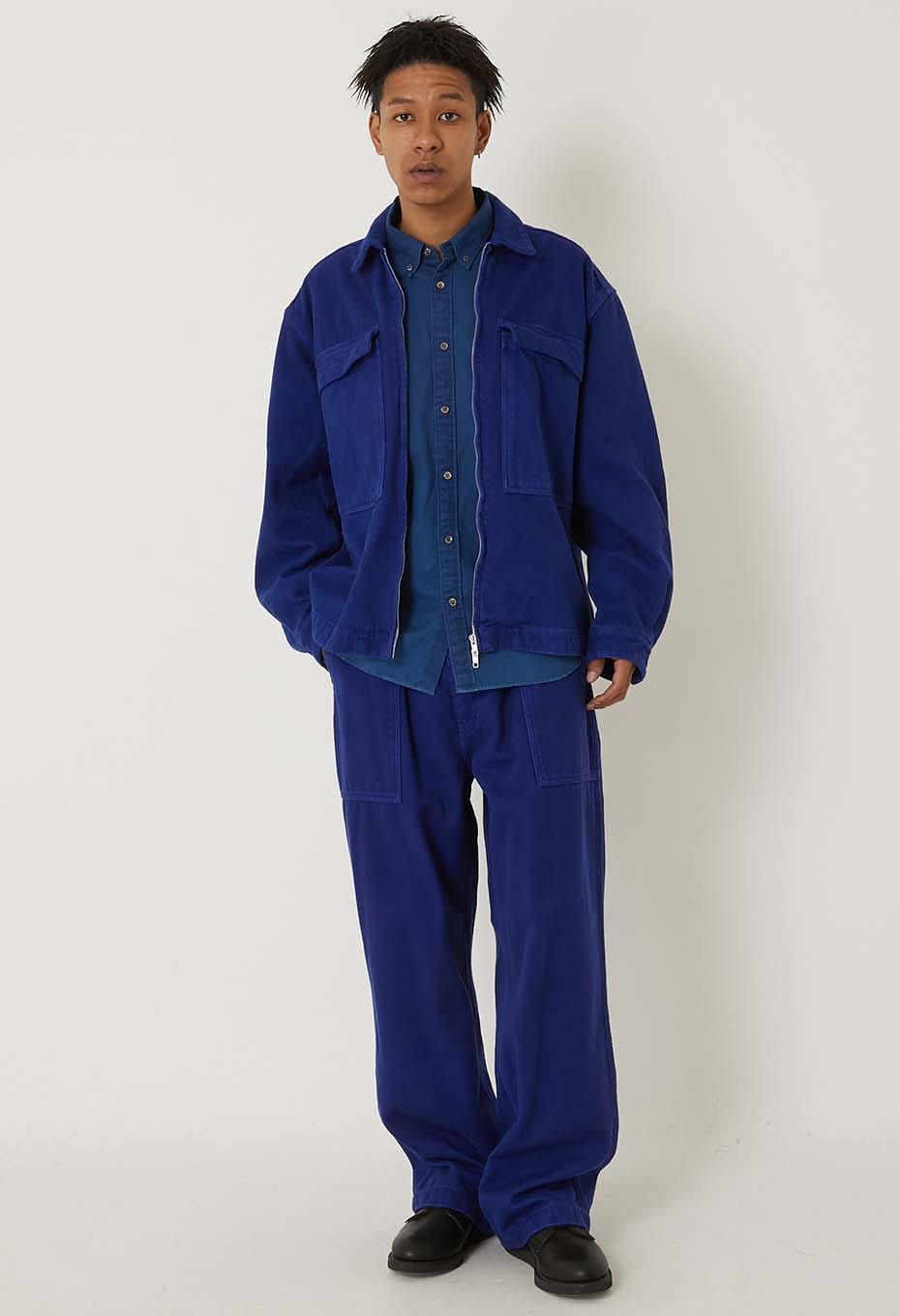 À la fois résistant et souple, ce tissu présente une belle texture et une excellente tenue. Après la confection, chaque pièce est teinte à la main en indigo par des artisans, donnant naissance à un bleu Travail euro profond et authentique.